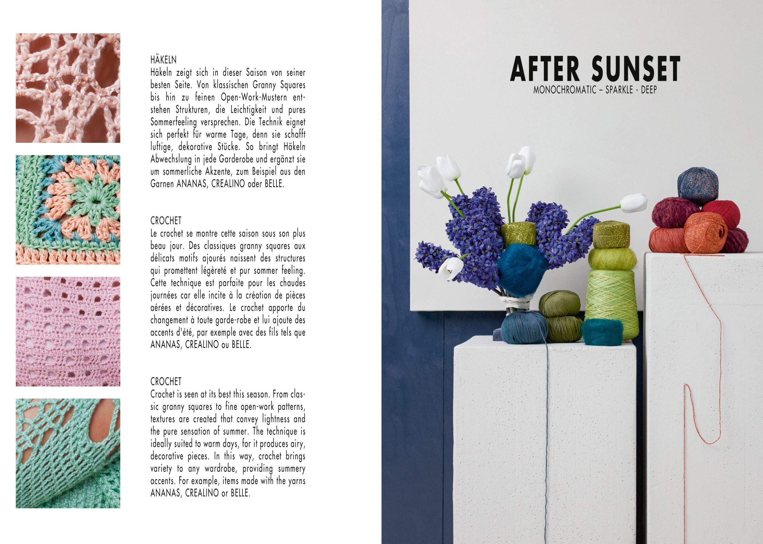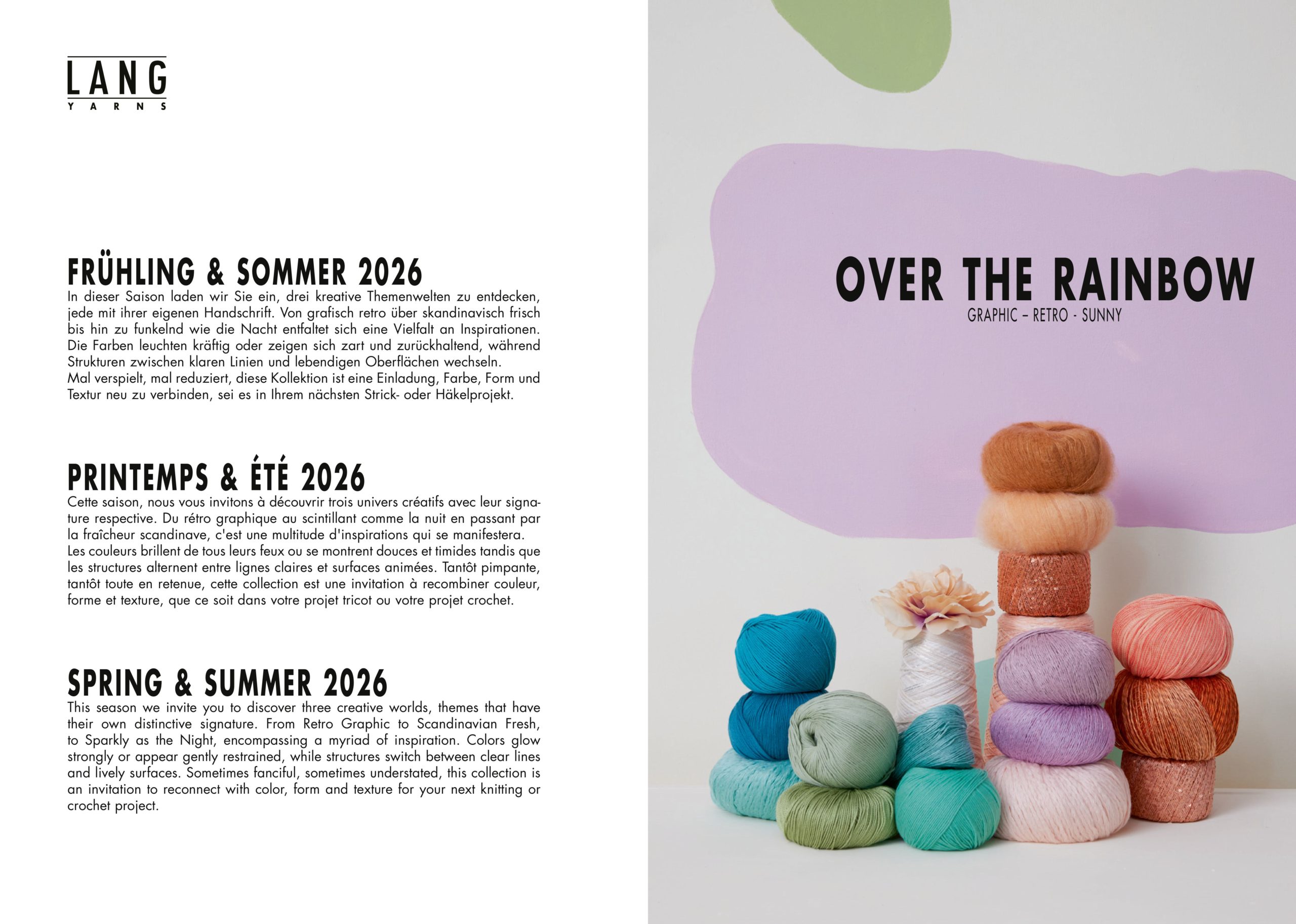 Mal verspielt, mal reduziert, diese Kollektion ist eine Einladung, Farbe, Form und Textur neu zu verbinden, sei es in Ihrem nächsten Strick- oder Häkelprojekt.
