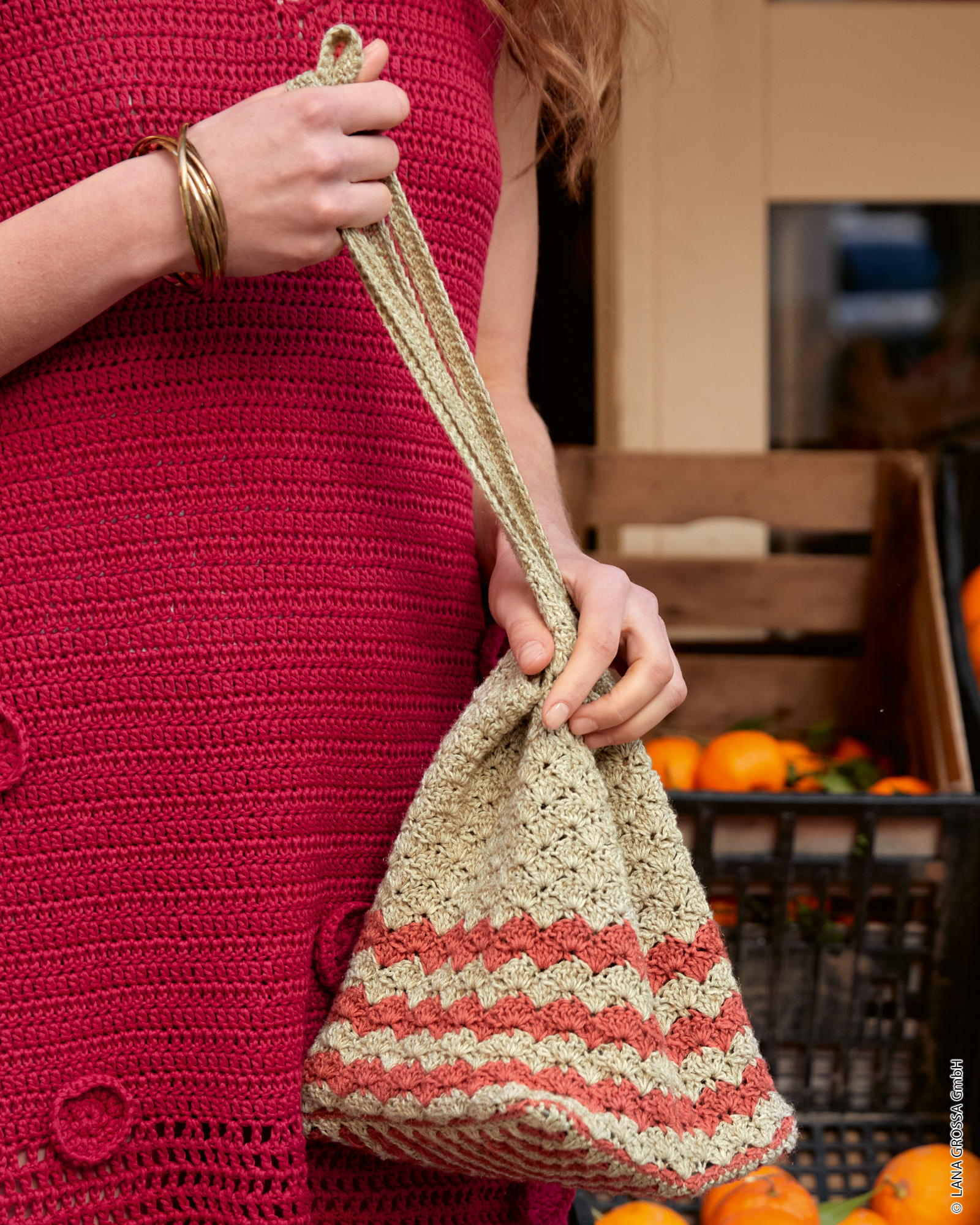 Strickset Henkeltasche Im Stäbchen- Und Muschelmuster aus Diversa von Lana Grossa