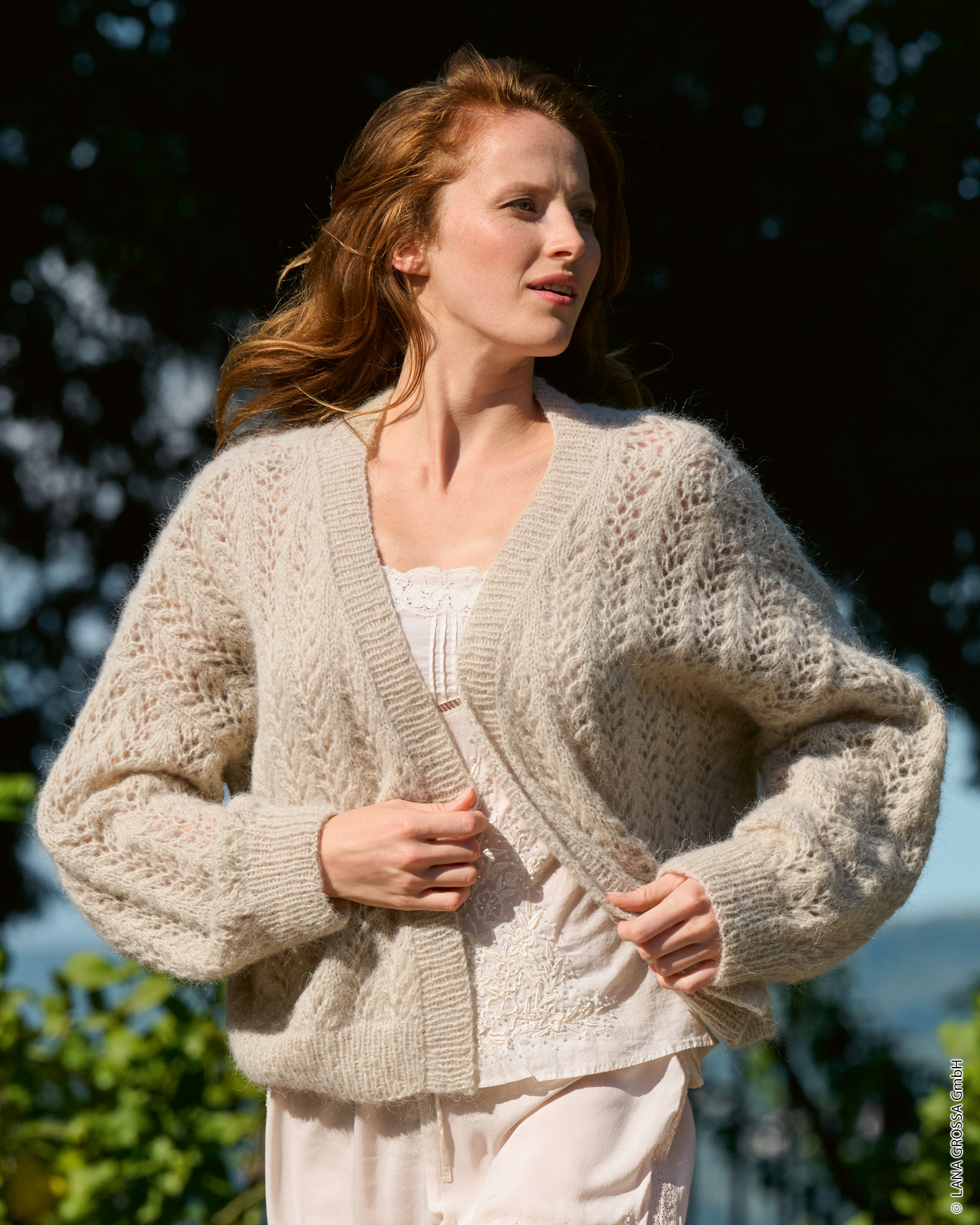 Strickset Lochmuster-cardigan aus Setasuri von Lana Grossa