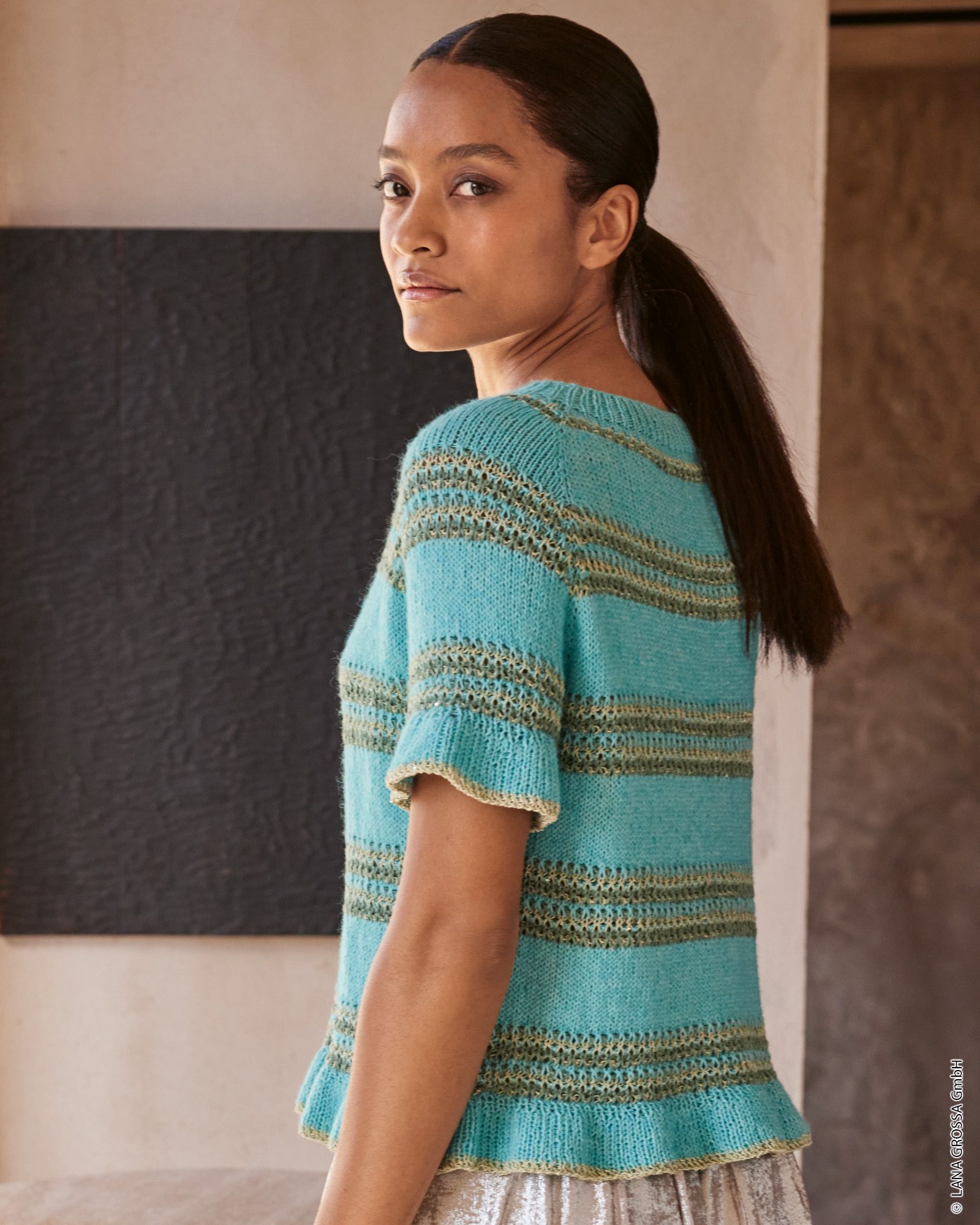 Strickset Top-down Shirt aus Ecopuno, Tencellino und Filo Pailettes von Lana Grossa